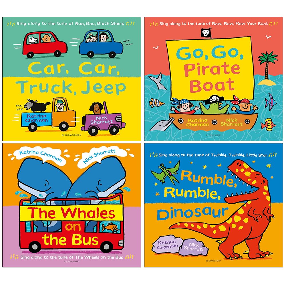 Car Car Truck Jeep — A high-energy tour of vehicles big and small. From cars and buses to planes, trains and diggers, this book pairs lively, repetitive text with the tune of "Baa, Baa, Black Sheep" for an instantly familiar sing-along experience that helps young children learn words and sounds.